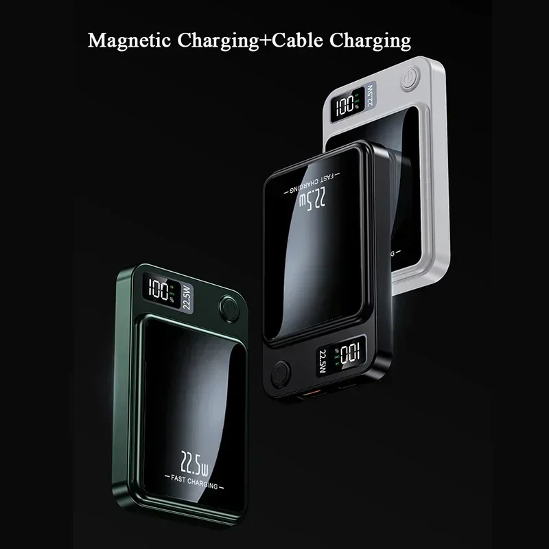 دعم 22.5 واط شحن سريع/دعم 15 واط تشى شحن لاسلكي/دعم شحن لاسلكي تشى مغناطيسي/دعم إدخال وإخراج من النوع C/دعم مخرج USB/مع حلقة مغناطيسية للهواتف الذكية اللاسلكية