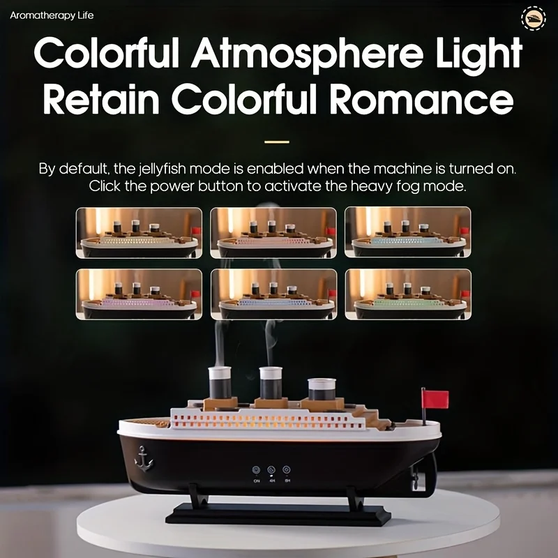 تيتانيك نموذج باخرة الهواء المرطب USB المنزل 250 مللي زيت طبيعي الناشر قنديل البحر الدخان الدائري رذاذ ناشر رائحة المرطبات 5
