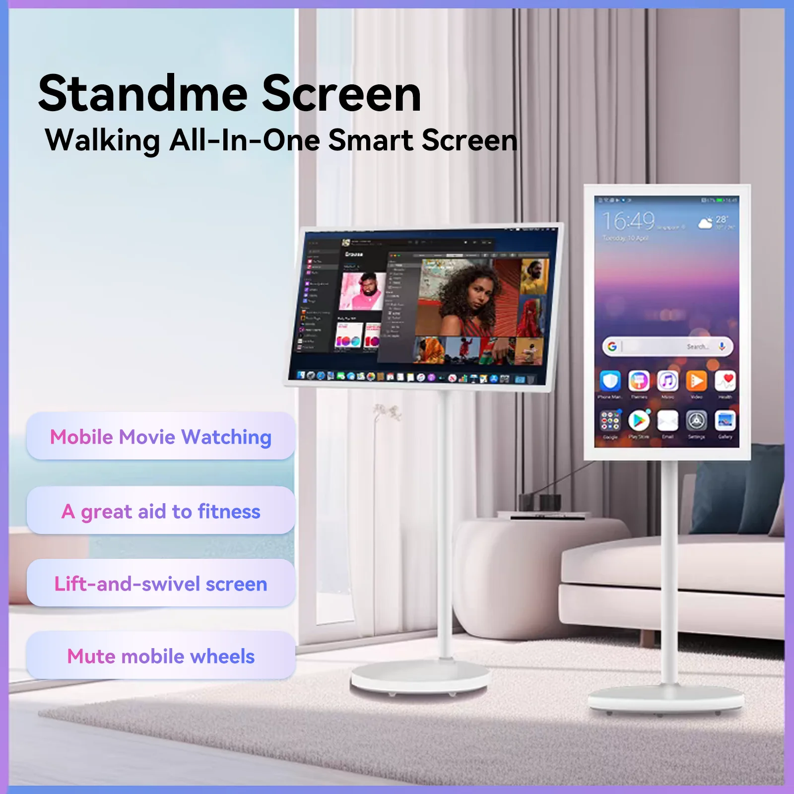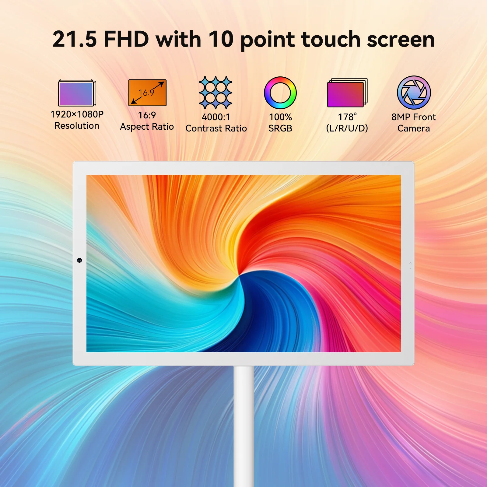 حامل أرضي تلفزيون ذكي 21.5 بوصة تعمل باللمس مع كاميرا 8 ميجابكسل 1080p FHD Pc Gamer 4+128 تخزين للبث المباشر واليوجا والألعاب والاجتماعات