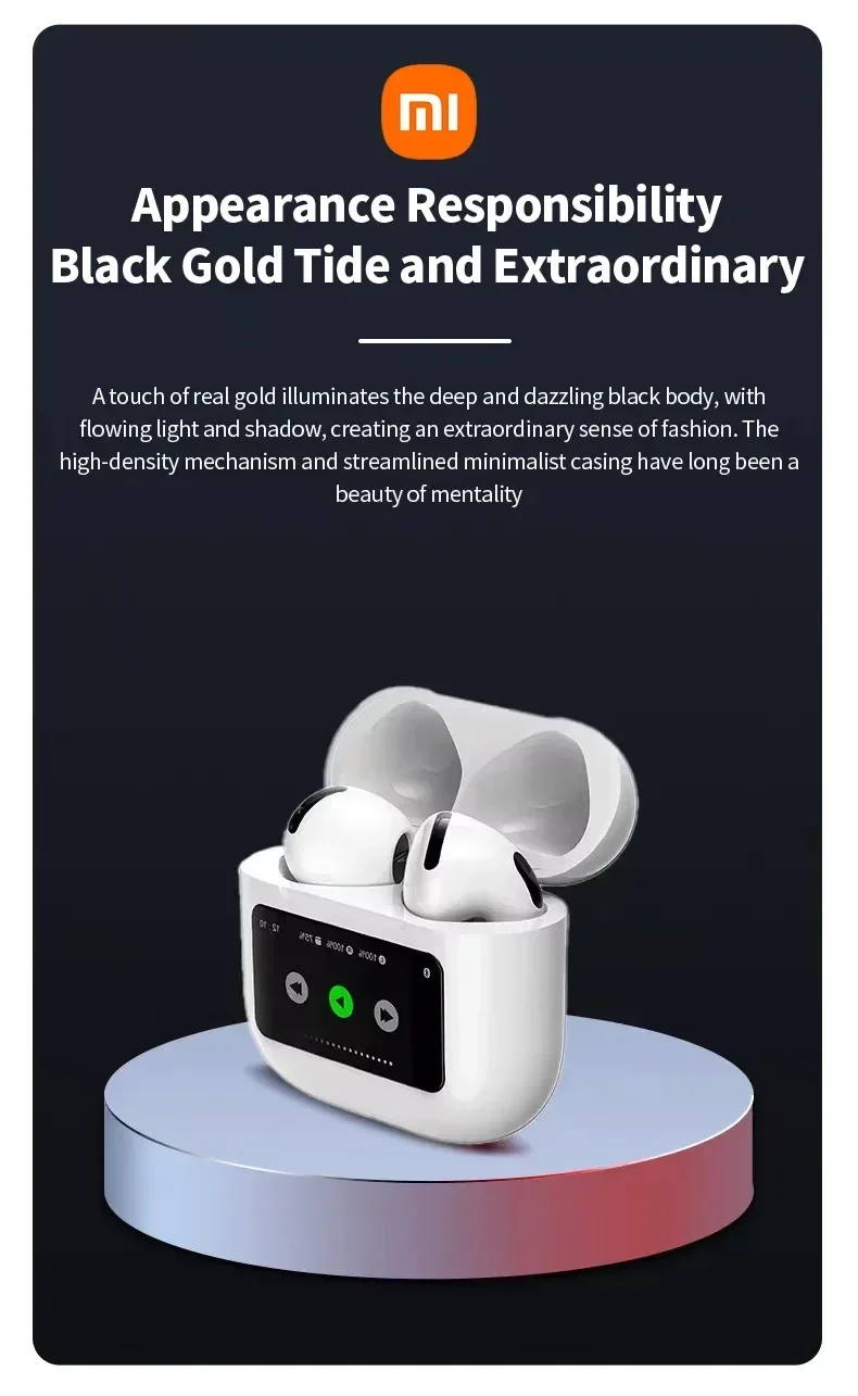 سماعات أذن بلوتوث بشاشة تعمل باللمس من Xiaomi سماعات رأس هجينة بخاصية إلغاء الضوضاء مع ميكروفون ENC للمكالمات اللاسلكية المضواة الكريستالية