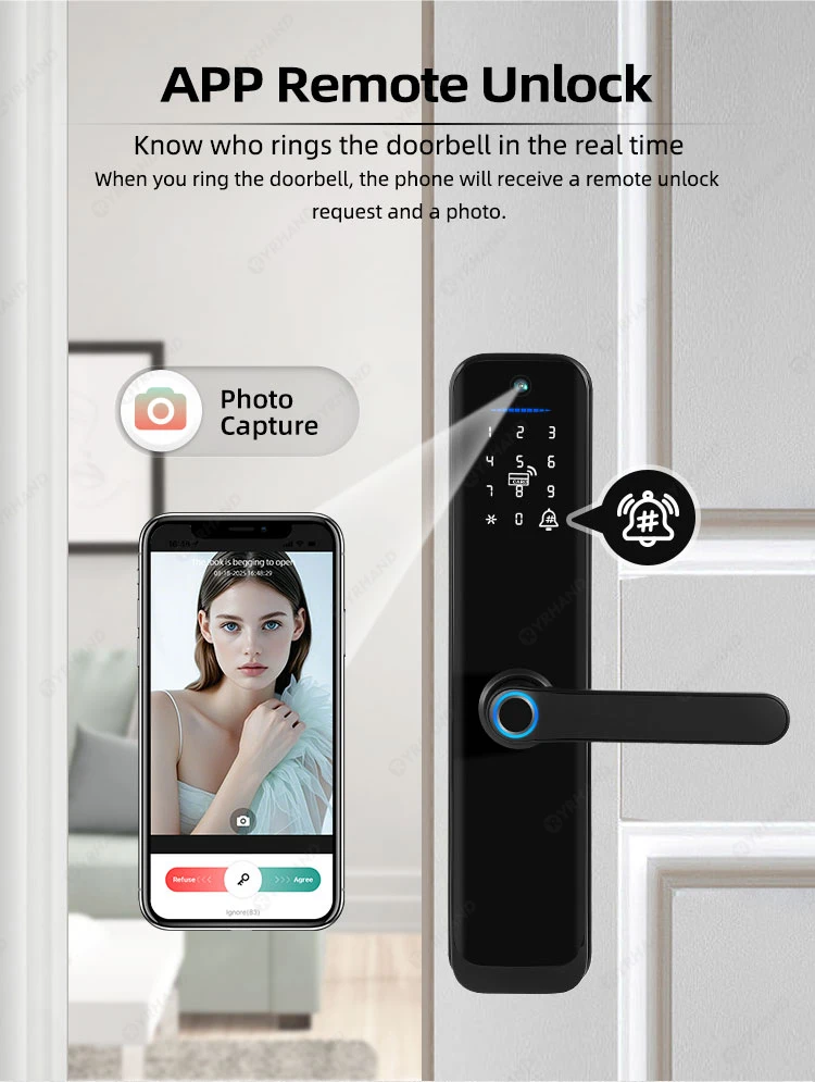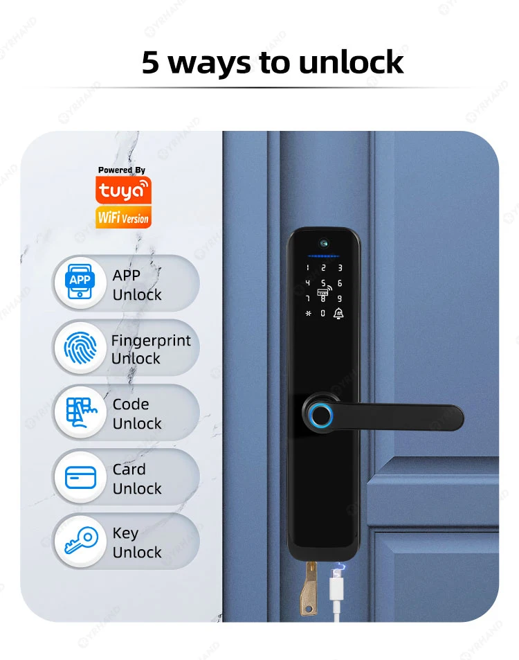 من المملكة العربية السعودية Tuya Wifi قفل الباب الذكي قفل رقمي إلكتروني مع بصمة الإصبع البيومترية بطاقة الكاميرا كلمة المرور مفتاح فتح